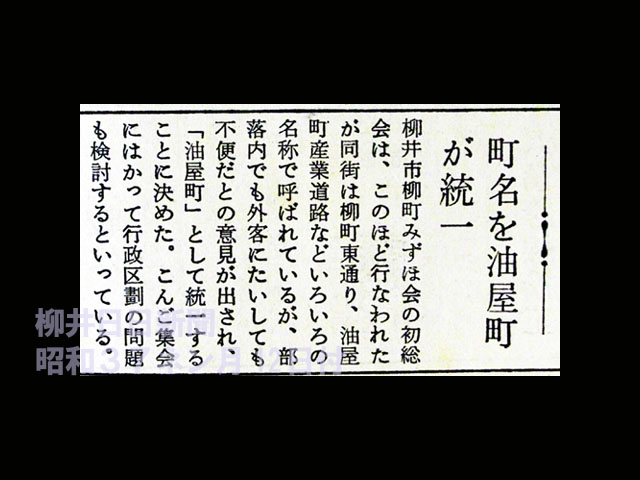 みずほ橋から現在の柳井郵便局の辺りまでを、昭和30年代の半ばから「油屋町(あぶらやちょう)」と呼んでいました。