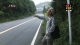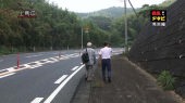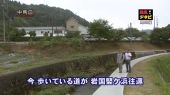 坂を上ると県道に合流します。30〜40メートルは、県道と往還道は同じです。 |