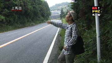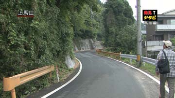 中馬皿バス停が見えるところまで来ました。バス停は写真の中央よりやや左上寄り、石垣の前。 |