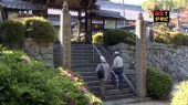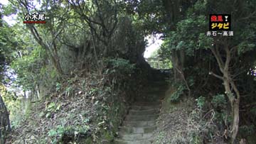 しばらく坂を上ると、こんな急な石段が!