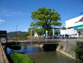 橋の向うに見える大きな木はクスノキ。